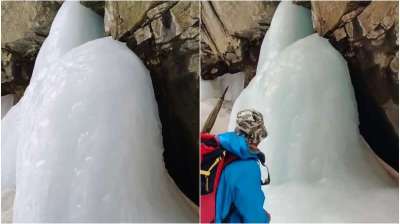 बर्फ में प्रकट हुआ शिव का चमत्कार! उत्तराखंड की घाटी में शिवलिंग और नंदी की अद्भुत आकृति