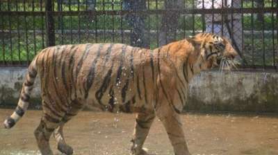 गर्मी से राहत: मैत्री बाग जू में शेरों के लिए पानी की बौछार शुरू
