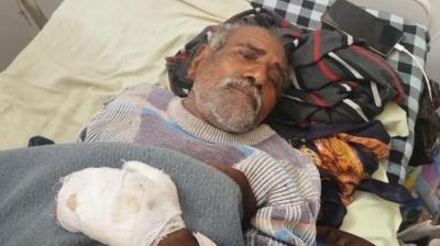 बस के पहिए के नीचे आने से बुजुर्ग गंभीर घायल