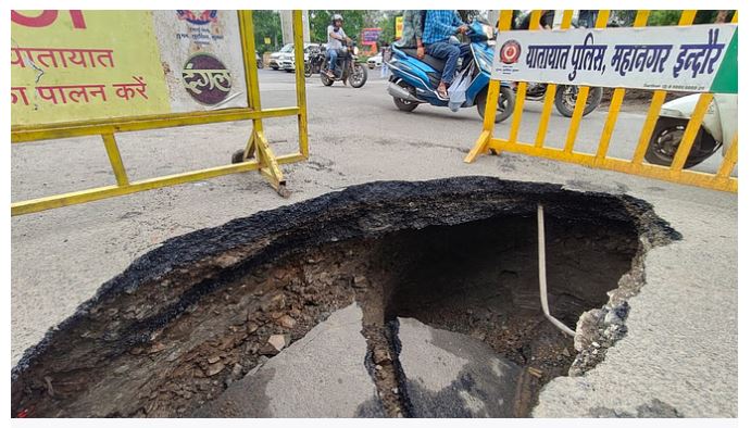 यह घटना में मेघदूत गार्डन के सामने से स्कीम नंबर 54 की तरफ जाने वाले मार्ग पर हुई थी। गड्ढे कोई जनहानि नहीं हुई, लेकिन सोशल मीडिया पर गड्ढे को लेकर लोगों ने तरह-तरह की प्रतिक्रिया दी। गड्ढे में गिरकर कोई वाहन चालक हादसे का शिकार न हो जाए, इसलिए उसके आसपास ट्रैफिक पुलिस ने बैरिकेड लगा दिए थे। रहवासियों ने अफसरों को बताया था कि सुबह के समय जिस हिस्से में सड़क धंसी थी, वहां पर पानी का रिसाव हो रहा था। इसे लेकर मेयर पुष्य मित्र भार्गव ने जांच के आदेश दिए थे। जांच में सामने आया कि एयरटेल कंपनी ने बिना नगर निगम की अनुमति के केबल लाइन डाली थी, जिससे सड़क पर गड्ढा बन गया। नगर निगम आयुक्त ने एयरटेल पर चार लाख रुपये का जुर्माना लगाया है। मेयर ने कहा कि कंपनी के खिलाफ एफआईआर करने के निर्देश भी दिए गए है ताकि भविष्य में कोई भी कंपनी बिना नगर निगम की अनुमति कार्य नहीं करेगी।