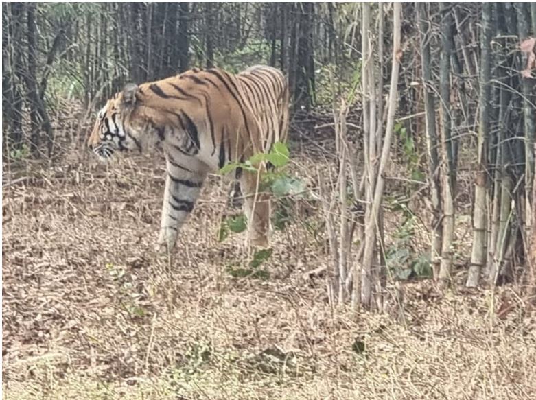 स्थानीय ग्रामीणों ने बाघिन के दर्शन का वीडियो बनाकर सोशल मीडिया में वायरल कर दिया, जो अब तेजी से सुर्खियां बटोर रहा है। हालांकि अब तक किसी इंसान को कोई नुकसान नहीं पहुंचा है, लेकिन बाघिन ने एक भैंस को शिकार बना लिया है और उसे मारकर नजदीकी तालाब में आराम करती देखी गई है।