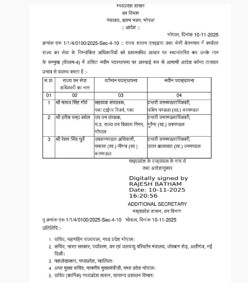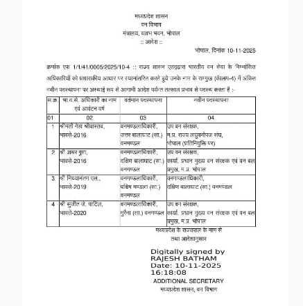 वन विभाग में ट्रांसफर झटका! कई वरिष्ठ अफसरों की कुर्सियाँ बदलीं