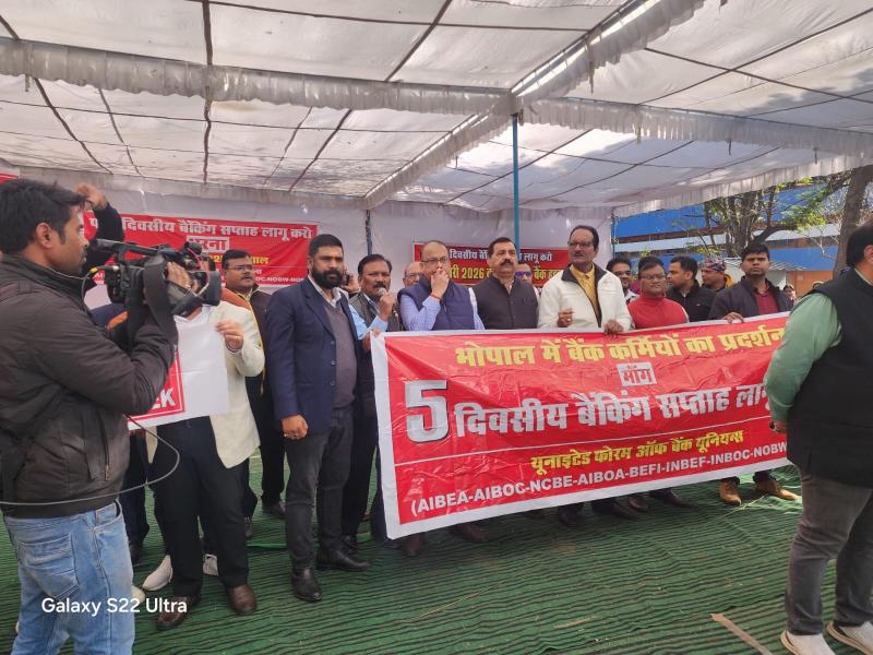 भोपाल में गरजे बैंक कर्मचारी, पाँच दिवसीय बैंकिंग सप्ताह लागू करने की मांग तेज