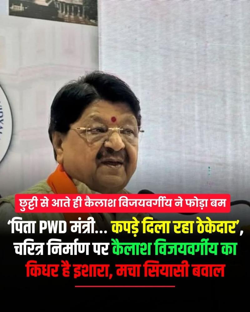 इंदौर। मध्य प्रदेश के नगर विकास मंत्री बौखलाए कैलाश विजयवर्गीय छुट्टी से लौट आए हैं। अब सार्वजनिक कार्यक्रमों में वह दिखने लगे हैं। इंदौर स्थित एक निजी विश्वविद्यालय के कार्यक्रम में वह पहुंचे थे। उन्होंने एक बयान दिया है, जिससे एमपी में सियासी तूफान आ गया है। कैलाश विजयवर्गीय वहां स्कूली शिक्षा और बच्चों के चरित्र निर्माण पर कार्यक्रम को संबोधित कर रहे थे। उन्होंने मंच से एक उदाहरण देते हुए कहा कि अगर पिता पीडब्ल्यूडी मिनिस्टर है और बेटे को कपड़े ठेकेदार दिलवाएं तो ऐसे में चरित्र निर्माण कैसे होगा। अब इस बयान की चर्चा हर तरफ हो रही है। आखिर कैलाश विजयवर्गीय ने इशारों इशारों में किसे घेरा है। वह भागीरथपुरा की घटना के बाद से चुप्पी साधे हुए थे। छुट्टी से लौटने के बाद पहली बार उनका बड़ा बयान आया है। गौरतलब है कि कैलाश विजयवर्गीय अपने बेबाक बयान के लिए जाने जाते हैं। वह बयानों की वजह से ही सुर्खियों में रहते हैं। कई बार उनके बयान से भारतीय जनता पार्टी भी असहज हो जाती हैं। इंदौर की घटना के दौरान उनका घंटा वाले बयान की भी खूब चर्चा हुई थी।