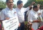 विधानसभा के बाहर खाली गुल्लक के साथ विपक्ष का प्रदर्शन