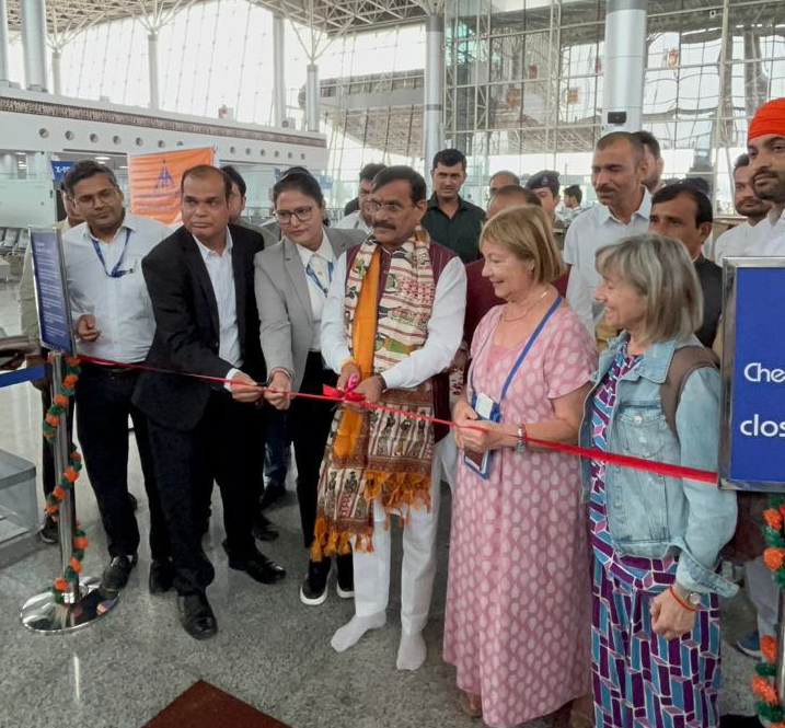 खजुराहो सांसद विष्णुदत्त शर्मा इसी फ्लाइट से खजुराहो पहुंचे। खजुराहो एयरपोर्ट पर राजनगर विधायक अरविंद पटेरिया, भाजपा जिलाध्यक्ष चंद्रभान सिंह गौतम और भाजपा कार्यकर्ताओं ने उनका स्वागत किया। सांसद शर्मा ने विदेशी पर्यटकों के साथ केक और रिबन काटकर इस हवाई सेवा का औपचारिक शुभारंभ किया। वहीं सांसद वीडी शर्मा का एयरपोर्ट निर्देशक संतोष सिंह द्वारा स्वागत किया गया। इस अवसर पर सांसद शर्मा ने खजुराहो एयरपोर्ट पर एक लाइब्रेरी का भी उद्घाटन किया। उन्होंने एयरपोर्ट पर ही प्रधानमंत्री नरेंद्र मोदी के मन की बात कार्यक्रम को सुना। उन्होंने खजुराहो से जयपुर के लिए जल्द ही हवाई कनेक्टिविटी शुरू होने की संभावना जताई और खजुराहो-वाराणसी वंदे भारत ट्रेन की सौगात के लिए प्रधानमंत्री और रेल मंत्री का आभार व्यक्त किया।