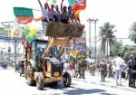 BJP उम्मीदवार का अलग अंदाज, बुलडोजर के साथ किया नामांकन