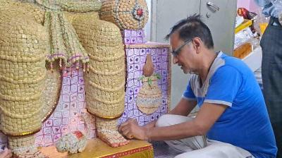 पर्यावरण के प्रति जागरूकता का प्रतीक बनी सोयाबीन से निर्मित गणेश प्रतिमा
