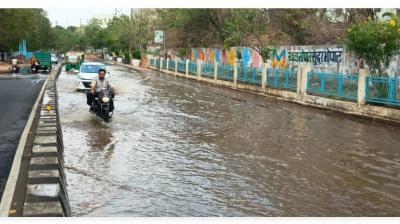 भोपाल में लोक भवन के सामने फिर लापरवाही उजागर, पाइपलाइन फटने से धंसी सड़क