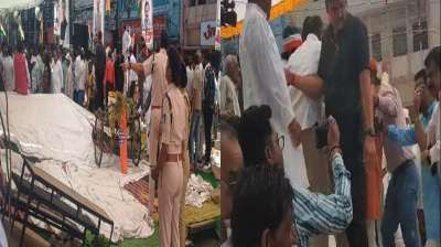 किसानों के मुद्दे पर कांग्रेस का प्रदर्शन, लेकिन मंच नहीं टिका, एक के बाद एक नेता गिरे