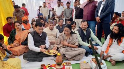 कृषि मंत्री नेताम ने मिट्टी एवं बीजों की पूजा की और ट्रैक्टर चलाकर बीजों की बुआई की